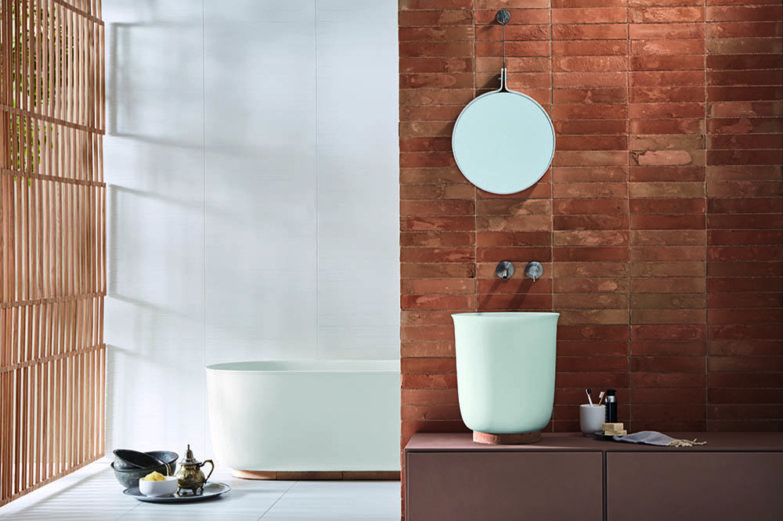 La nouvelle collection Hammam évoque l’atmosphère du Hamman et de l’onsen, la salle de bain japonaise: un lieu magique où les aspects sensoriels et fonctionnels sont complétés par des significations plus profondes.